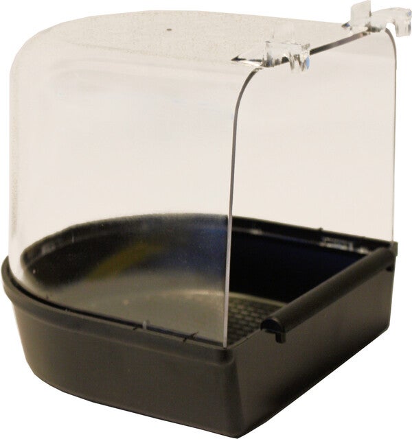 Vogels vinden het heerlijk om een bad te nemen! Daarom zorgt dit grote badhuis voor veel badplezier. De kap zorgt ervoor dat het water niet uit het badje gespetterd wordt. Het vogelbad is gemakkelijk te monteren aan de kooi.